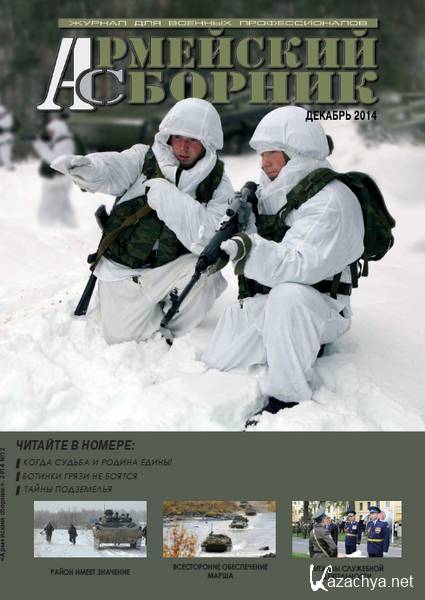«Армейский сборник» — ежемесячный иллюстрированный военно-технический и практико-методический журнал. На его страницах – объективная информация о строительстве Вооруженных Сил России, боевой и специальной подготовке войск, а также об их тыловом и техническом обеспечении. Объект журналистского внимания – виды Вооруженных Сил и рода войск, охватывающие сферы земля, воздух, космос.