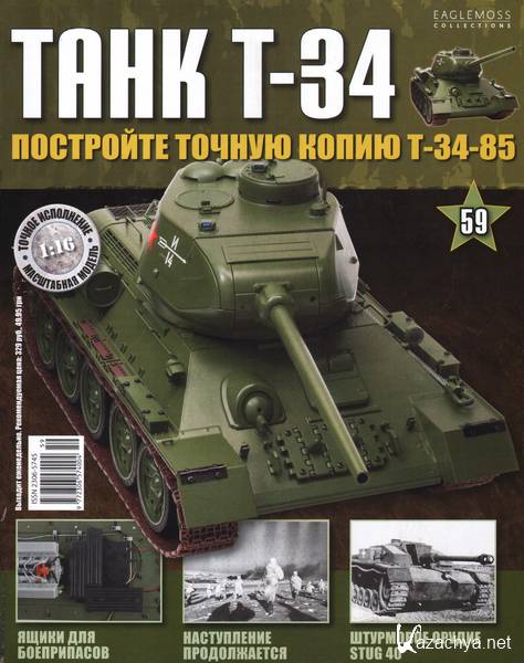 «Танк T-34» - журнал который предлагает нам собрать точную, детализированную и достоверную модель танка Второй мировой войны в масштабе 1:16 - Т-34-85. Каждый номер состоит из 16 страниц. На них будет находиться подробная информация о разработке русских танков и истории создания Т-34-85. Кроме этого, в каждом номере можно будет прочесть очерки о людях, которые проектировали и строили Т-34-85, сражались на нем, а также о великих битвах, в которых принимал участие танк.