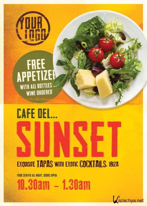 PSD исходник флаера - Кафе Sunset