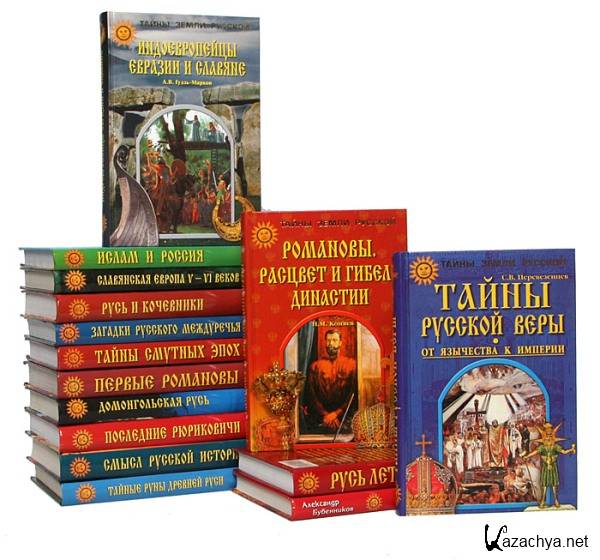 «Тайны Земли Русской» - очень популярная книжная серия, выпущенная издательством «Вече». Основной темой практически всех произведений является исследование загадок и тайн, которых великое множество в нашей истории. Для объяснения некоторых «темных пятен» в истории, авторы выдвигают гипотезы, которые граничат, а иногда и переплетаются с фантастикой. Эта серия очень познавательна и интересна.