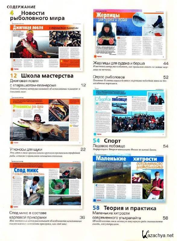 Специализированный журнал для любителей и профессионалов рыбной ловли. Издание богато статьями самых продвинутых рыболовов, неоднократно выигрывавших не только национальные, но и мировые первенства. Журнал рассчитан на широкий круг читателей и содержит большое количество рубрик: «Школа мастерства», «Теория и практика», «Туризм», «Арсенал», «Школа выживания», «Своими руками», «Мнение ихтиолога», «Спорт», «Кулинария» и др.