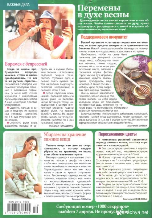 Народный журнал, который будет полезен каждому без исключения. Он содержит по несколько полос из каждой области человеческой жизни: воспитание детей, кулинария, здоровье, строительство и ремонт, сад и огород, умелые руки, дизайн, физическое развитие, психологические и юридические консультации.