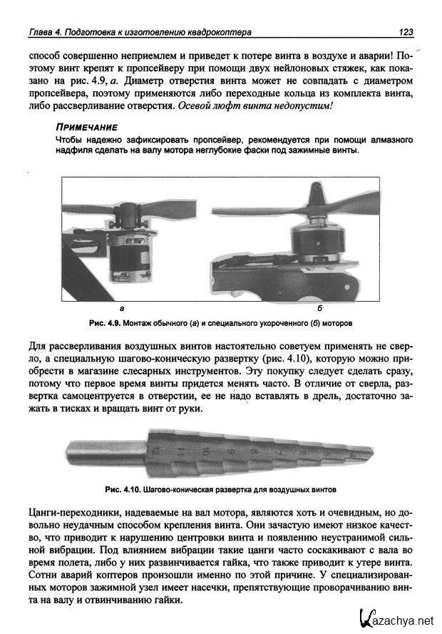 Содержание: Автор не ставил перед собой задачу бремени исчерпывающую энциклопедию или настольный путеводитель. Вы держите в руках руководство для начинающих, назначение которого — пособить вам построить свой первый квадрокоптер, обойдясь без нескладных технических ошибок и чрезмерных денежных затрат. Интеллектуальная цена вхождения в это сложное хобби весьма высока. Автор постарался сберечь для вас главную ценность — время. В книге плотно переплетаются теория и практика, иначе в авиамоделизме нельзя. Материал не обязательно читать по порядку. Обращайтесь к нужным главам и разделам по мере работы над своей конструкцией. Рекомендуем, прежде всего, ознакомиться с общими принципами работы квадрокоптера и определиться с набором компонентов, которые необходимо закупить.