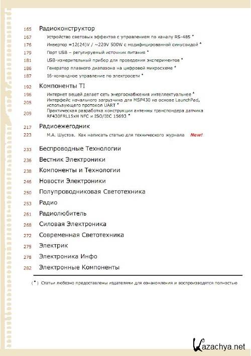 Журнал представляет собой объёмнейший выпуск тематического информационного обзора печатных изданий и сети Интернет. Содержит актуальные статьи и множество опробованных схем практической электроники. Издание ориентировано на практическое использование как специалистами так и радиолюбителями.