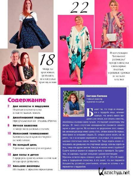 Современный журнал по шитью. Десятки оригинальных, изысканных и шикарных моделей pret-a-porter для женщин. Журнал дополнен специальным разделом, где представлены варианты коллекций для полных, маленьких и миниатюрных женщин, а также детские и мужские модели. В каждом номере героини известных отечественных и зарубежных кинофильмов и сериалов представляют вниманию читательниц эксклюзивные модели одежды, которые можно легко сшить, используя удобные выкройки и понятные инструкции. Постоянные рубрики: Тенденции моды pret-a-porter, Практичная мода, Подиумы мира.