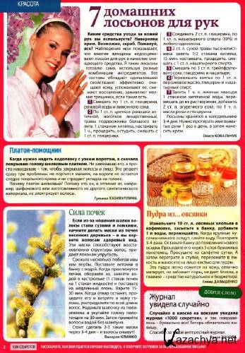 Народный журнал, который будет полезен каждому без исключения. Он содержит по несколько полос из каждой области человеческой жизни: воспитание детей, кулинария, здоровье, строительство и ремонт, сад и огород, умелые руки, дизайн, физическое развитие, психологические и юридические консультации.