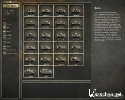 В игре представлены разнообразные нации: Германия, Италия, Польша, Франция, Великобритания, США, СССР, Норвегия, Бельгия, Нидерланды, Албания, Румыния, Греция и другие. Становятся доступными герои и единицы техники, которые путешествуют с вами в течение всей кампании. Прохождение Panzer Corps очень интересное. С приобретением опыта есть возможность обновляться, становится доступный больший выбор нового оружия и техники.