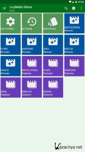 LazyMedia Deluxe - программа служит для просмотра онлайн фильмов и сериалов с популярных ресурсов. Это приложение, можно запустить не только на Android TV, но и на обычных TV-Box, планшете или смартфоне с версией Android выше 4.2.