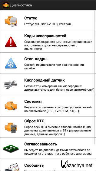 • Отображение кодов неисправности двигателя и коробки передач (известные также как ППЗ) и указание их значения (доступно более 11 000 значений)