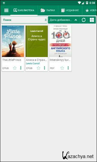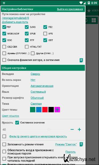·поиск всех PDF, EPUB, MOBI, DjVu, FB2, TXT, RTF, AZW, AZW3, HTML, CBZ книг на устройстве