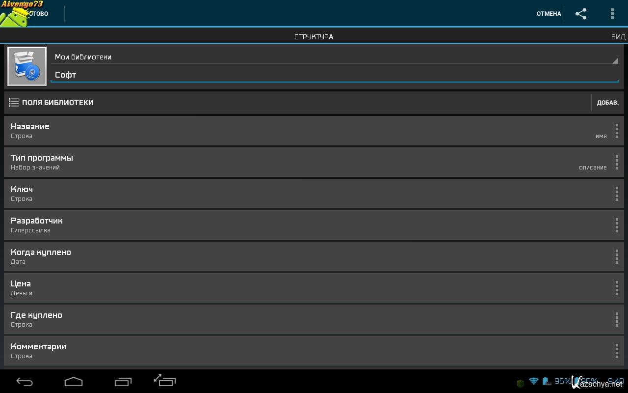 * 19 типов полей: строка, число, дата, логическое, контакт, картинка, координата google maps, аудио файл и другие.