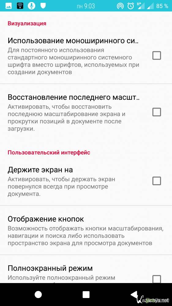 – PDF (экспериментальный вариант для Android 4.4 и ниже, эту опцию необходимо активировать в настройках приложения)