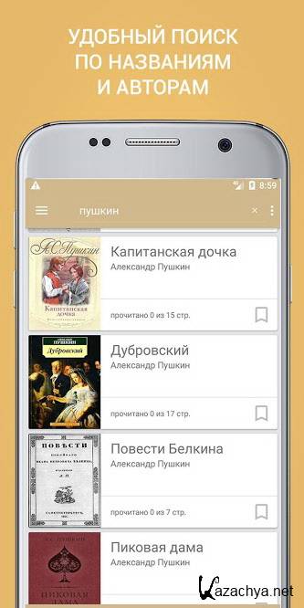 Приложение "Лучшие книги русских писателей классиков" позволяет вести список избранных книг, использовать удобный поиск по названиям и авторам. Приложение запоминает ваш текущий прогресс чтения и позволяет вернуться к последней странице быстро и удобно.