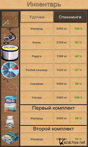 - Широкий выбор рыболовных снастей: Поплавочная удочка, спиннинг, донка