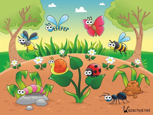 Веселые насекомые на поляне (векторные отрисовки)