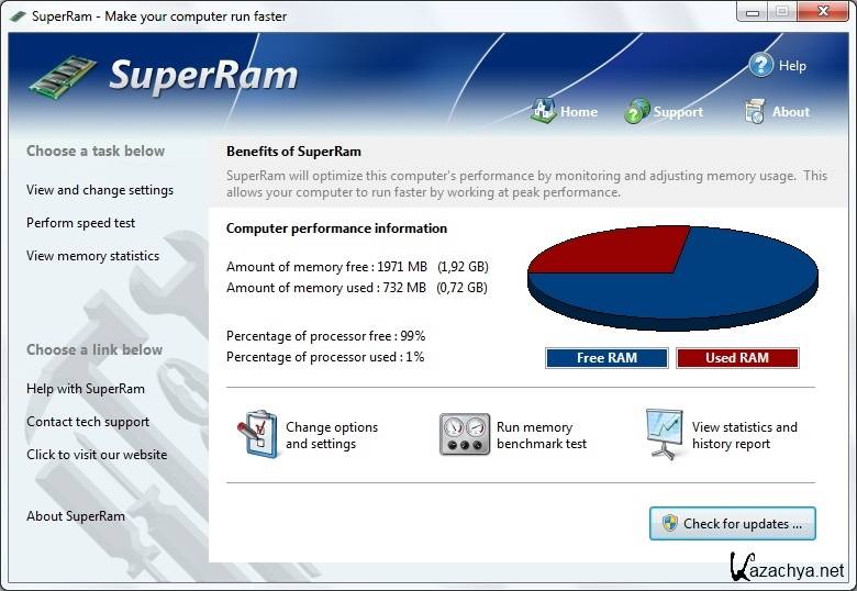 PGWARE SuperRam – это программа для управления и оптимизации использования оперативной памяти компьютера. Программа сделает работу Вашего компьютера значительно быстрее, взяв под свой контроль управление оперативной памятью.