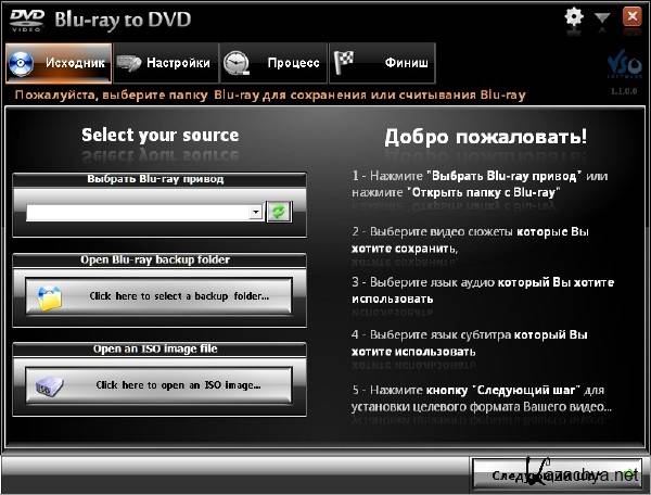 Скачать VSO Blu-ray to DVD converter v1.1.0.0 Final (Rus/2010):