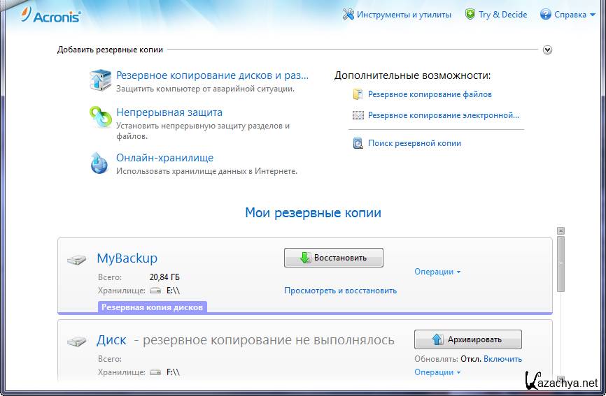 документов, музыки, видео, фотографий и электронной почты В отличие от обычных фотографий и музыкальных компакт-дисков, цифровые материалы на компьютере могут быть безвозвратно утеряны при выходе компьютера из строя. Acronis® True Image позволяет избежать их утраты.