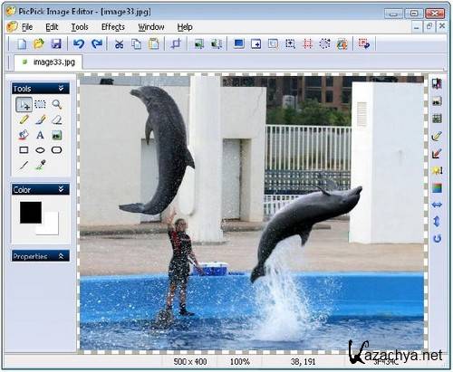 PicPick - бесплатное приложение, объединяющее в себе возможности простого графического редактора и утилиты для захвата изображений с экрана компьютера. PicPick обладает простым и удобным интерфейсом. Среди особых возможностей стоит выделить возможность захвата целого рабочего экрана (в том числе, и на мультимониторных системах), захват только активного окна, отдельной области, целых веб-страниц (с автоматической прокруткой) или же областей с произвольными границами. Графический редактор похож на Microsoft Paint, но обладает встроенными фильтрами и эффектами.