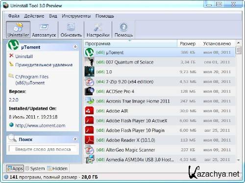 - просмотр детальной информации о любой программе, установленной на вашем компьютере