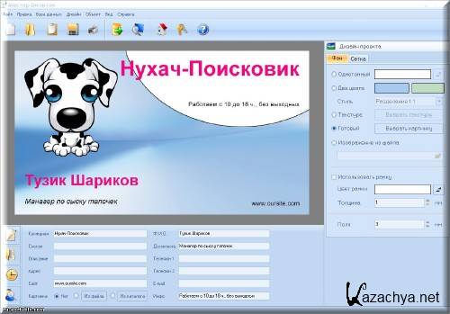 Программа для создания визиток включает обширный каталог готовых вариантов дизайна по различным темам, включая популярные сегодня визитки с фотографиями. Любой шаблон можно свободно редактировать. Если же вы захотите создать визитку с нуля, то вам поможет встроенный удобный редактор. С его помощью можно менять фон и композицию, настраивать цветовую гамму, добавлять картинки и многое другое.
