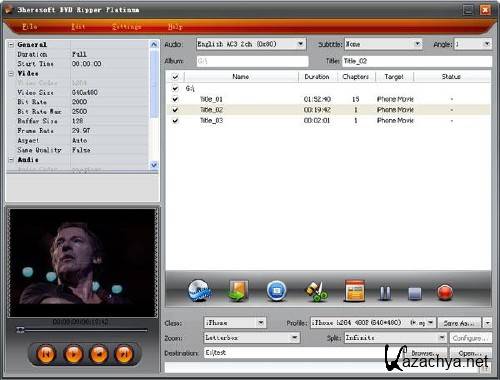 - Поддержка преобразования весь фильм или определенные названия или главы DVD;