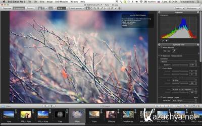 DxO Optics Pro - Программа для улучшения и корректировки цифровых фотографий. DxO Optics Pro обладает многими прогрессивными технологиями, с помощью которых можно отрегулировать яркость, контрастность, цветовой баланс, устранить искажения и повысить четкость изображений, исправить цвета и экспозицию по краям и в углах фотографии, отрегулировать баланс белого цвета с учётом цветовой температуры и многое другое.