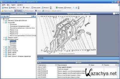 Система каталогов запчастей на компакт-диске. Содержит каталоги по: легковым и грузовым автомобилям, мототехнике, автобусам, тракторам, сельхозтехнике, спецтехнике, дорожно-строительной технике, двигателям. Это компьютерная База Данных с информацией об устройстве автомобилей от крупных узлов и агрегатов до запчастей с их кодами, наименованиями и графическими изображениями.