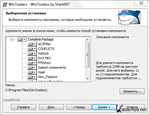 Пакет кодеков х64 Components ставится после установки основного пакета кодеков Win7codecs.