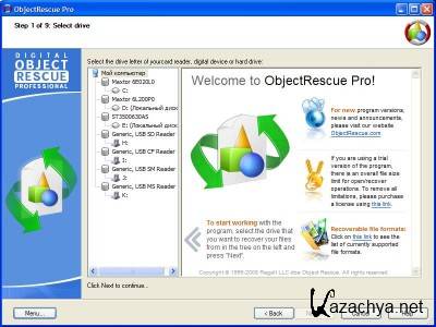 Digital ObjectRescue Professional 5.0 build 478 - Это универсальное решение для восстановления данных. Поможет восстановить потерянные и удаленные файлы с жесткого диска, цифровых фотоаппаратов, мобильных телефонов, со всех известных типов флэш-карт (CompactFlash, IBM Microdrives, SmartMedia, MultiMedia, Secure Digital (SD), Memory Sticks и т.д.)