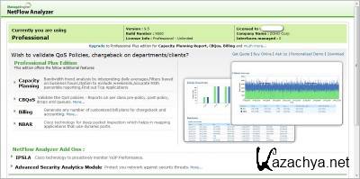 NetFlow Analyzer Professional Edition использует Cisco NetFlow®, sFlow®, cflowd®, J-Flow®, IPFIX®, NetStream® и NBAR®data, для анализа сетевого трафика и доклада об использовании пропускной способности в вашей сети.
