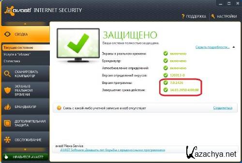 Название: Avast! Internet Security 7.0.1426 Final + Активация до 2050 года