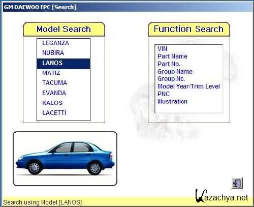 Электронный каталог запчастей автомобилей GeneralMotors-Daewoo- Leganza, Nubira, Lanos, Matiz, Tacuma, Evanda, Aveo, Lacetti.