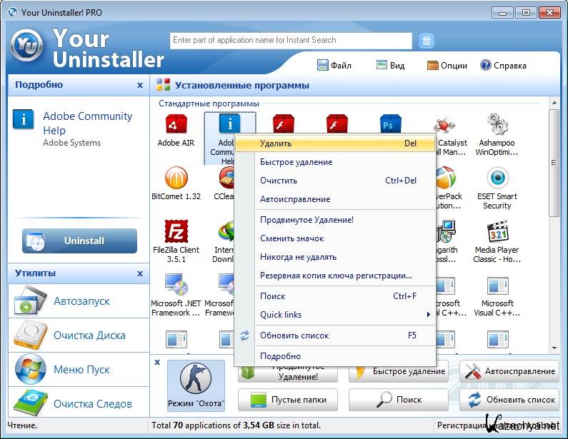 • Удаление программ, которые не могут быть удалены через стандартное удаление программ