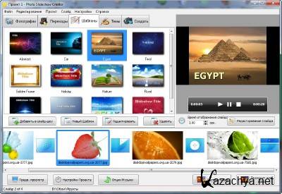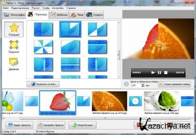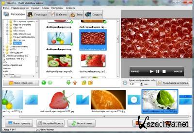 После сотворения слайд-шоу могут быть сохранены как исполняемый файл (EXE), заставки и видео, включая Full HD. Photo Slideshow Creator имеет удобный, многоязычный интерфейс, прост в освоении. Создание памятного слайд-шоу высокого качества в течение нескольких минут! Новая версия включает в себя способность записывать слайд-шоу на DVD.