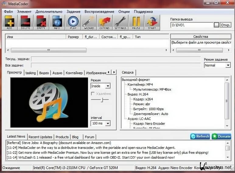 Возможности программы MediaCoder: