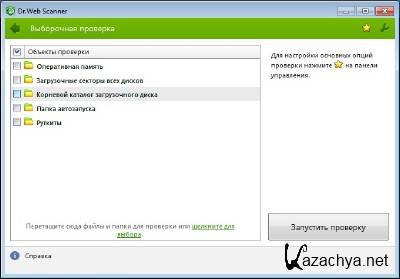 -Быстрая и максимально тщательная проверка оперативной памяти, загрузочных секторов, жестких дисков и сменных носителей.
