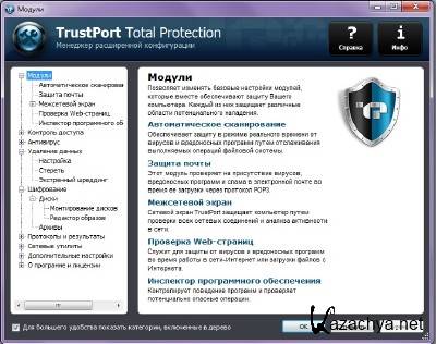 TrustPort Total Protection 2013 - комплексное антивирусное решение, использующее два антивирусных сканера - BitDefender и AVG.