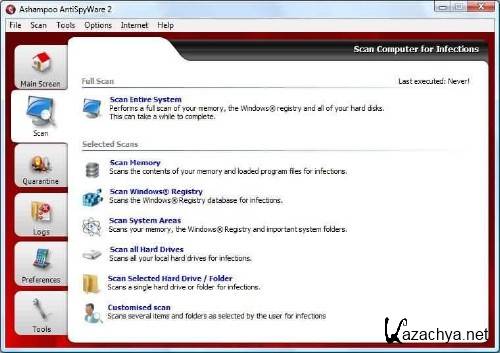 Ashampoo AntiSpyWare - Антишпионская программа, которая внимательно следит за всем происходящим в системе (даже самой Windows приходится просить разрешения внести в себя изменения), тем самым не позволяя пробраться в компьютер ни одной "шпионской" программе - всевозможным spyware, троянам, перехватчикам клавиатурного ввода, adware и т.п.