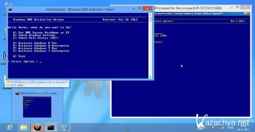 - Запускаем KMSmicro.cmd, ждём пока сервер загрузится. Если по какой-то причине сервер не запускается, зайдите в папку qemu и по-пробуйте запустить его от-туда файлом KMSdebug.cmd