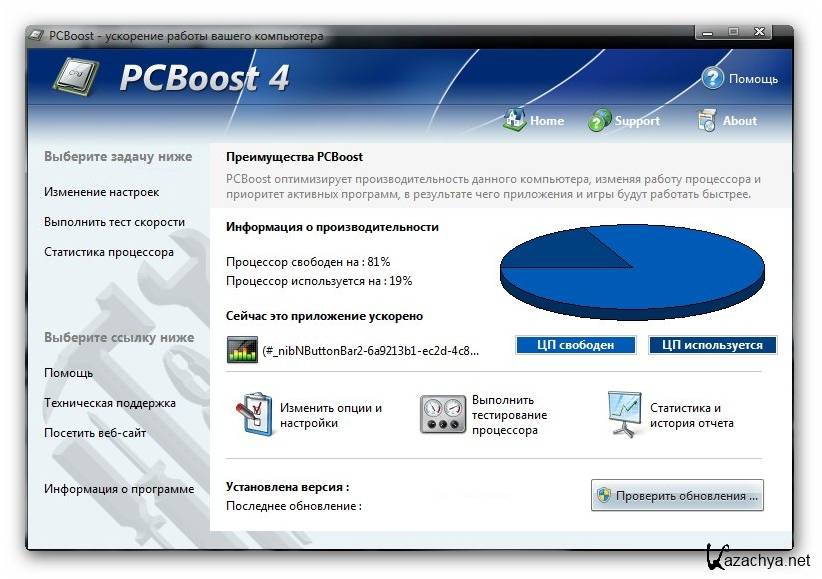 PCBoost пользуется этим, выделяя больше ресурсов процессора для активных в данный момент программ и игр. Все это делается автоматически без вас. PCBoost не наносит вреда компьютеру, обеспечивая при этом эквивалентную мощность, с компьютером имеющим более мощный процессор.