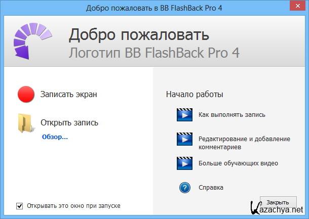 BB FlashBack - программа для записи экрана для создания обучающих программ, демо или учебных материалов. Может одновременно записывать несколько мониторов. Обладает функциями редактирования звука и изображения, эффектами экспорта в EXE и увеличения. Позволяет добавлять текстовые эффекты и подсветку, редактировать и прятать движения мыши, показывать изображения, вырезать и вставлять видео, изменять область отображения и пр.