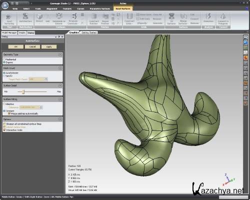 Geomagic Studio – это программный пакет, предоставляющий широкие возможности для проведения обратного инжиниринга, позволяющее создавать поверхностную модель объекта по оцифрованным данным. Пакет отличает от других простота работы и обучения, интуитивно понятный интерфейс и высокая скорость работы с большими объемами данных (до 100 миллионов точек). Реализована поддержка мультипроцессорных вычислительных систем. Поддерживается взаимодействие практически со всеми сканерами и приборами трехмерной оцифровки, а также импорт данных оцифровки различных форматов.