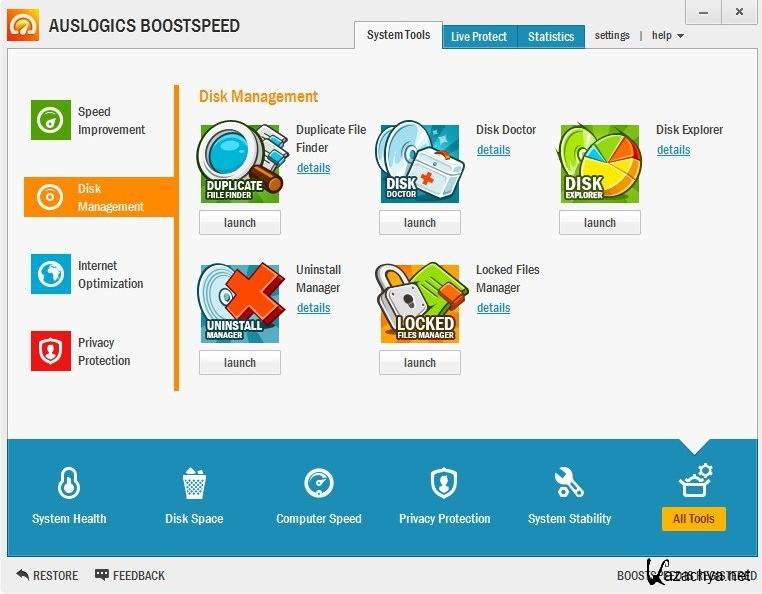 AusLogics BoostSpeed 6.4 - Auslogics BoostSpeed - самый известный набор утилит для оптимизации еще настройки вашей системы. Перед Вами откроется огромное разнообразных функций по максимальному увеличению производительности вашей ОС с помощью огромного количества проложений.