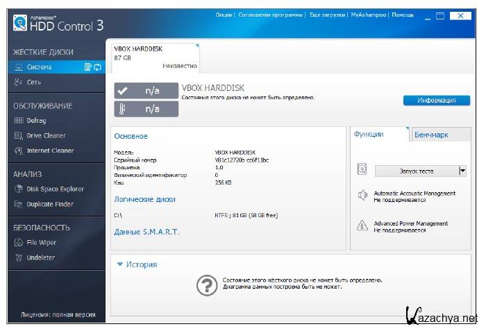Ashampoo HDD Control программа для контроля работы ваших жестких дисков. Данная программа будет вас предупреждать о возможных неисправностях дисков, сможет с легкостью решать повседневные задачи и очищать жесткие диски от ненужных данных.