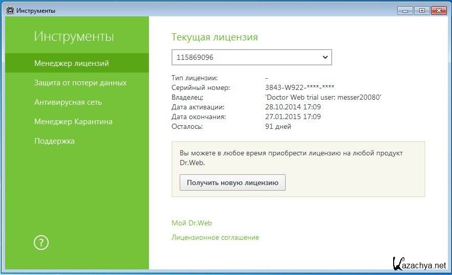 - Модуль обновления - который позволяет зарегистрированным пользователям получать обновления вирусных баз и других файлов комплекса, а также производит их автоматическую установку; незарегистрированным пользователям дает возможность зарегистрироваться или получить демонстрационный ключ.