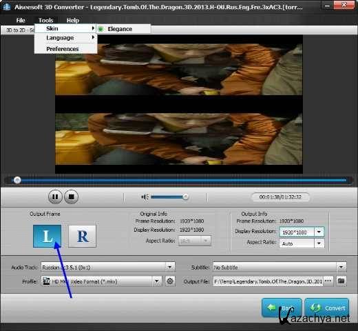 • конвертация 3D-видео в обычный 2D-видеофайл;