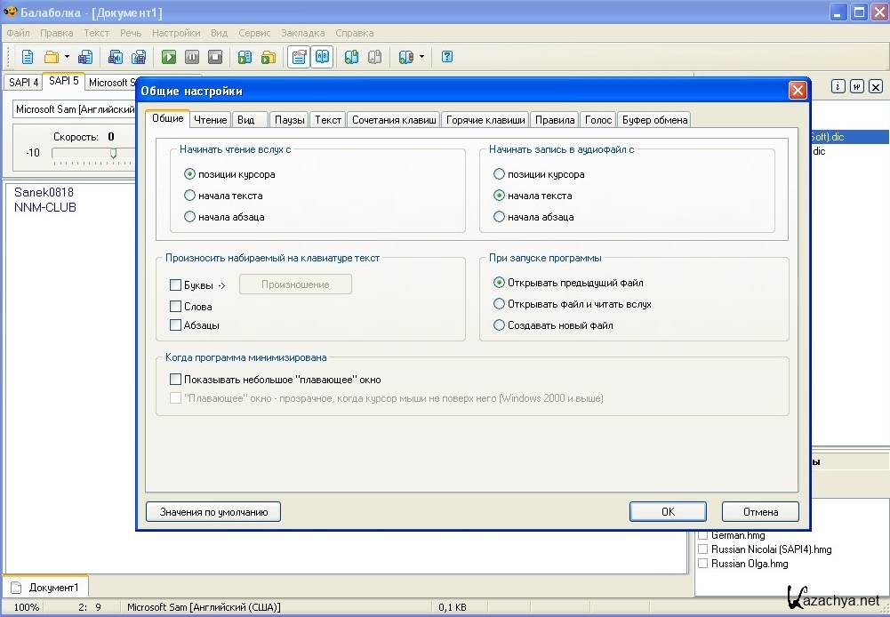 - Поддержка различных версий пакета голосовых функций Microsoft Speech API (SAPI);