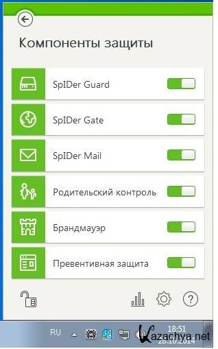 - SpIDer Guard – антивирусный сторож, который постоянно находится в оперативной памяти, осуществляя проверку файлов и памяти «на лету», а также обнаруживая проявления вирусной активности;