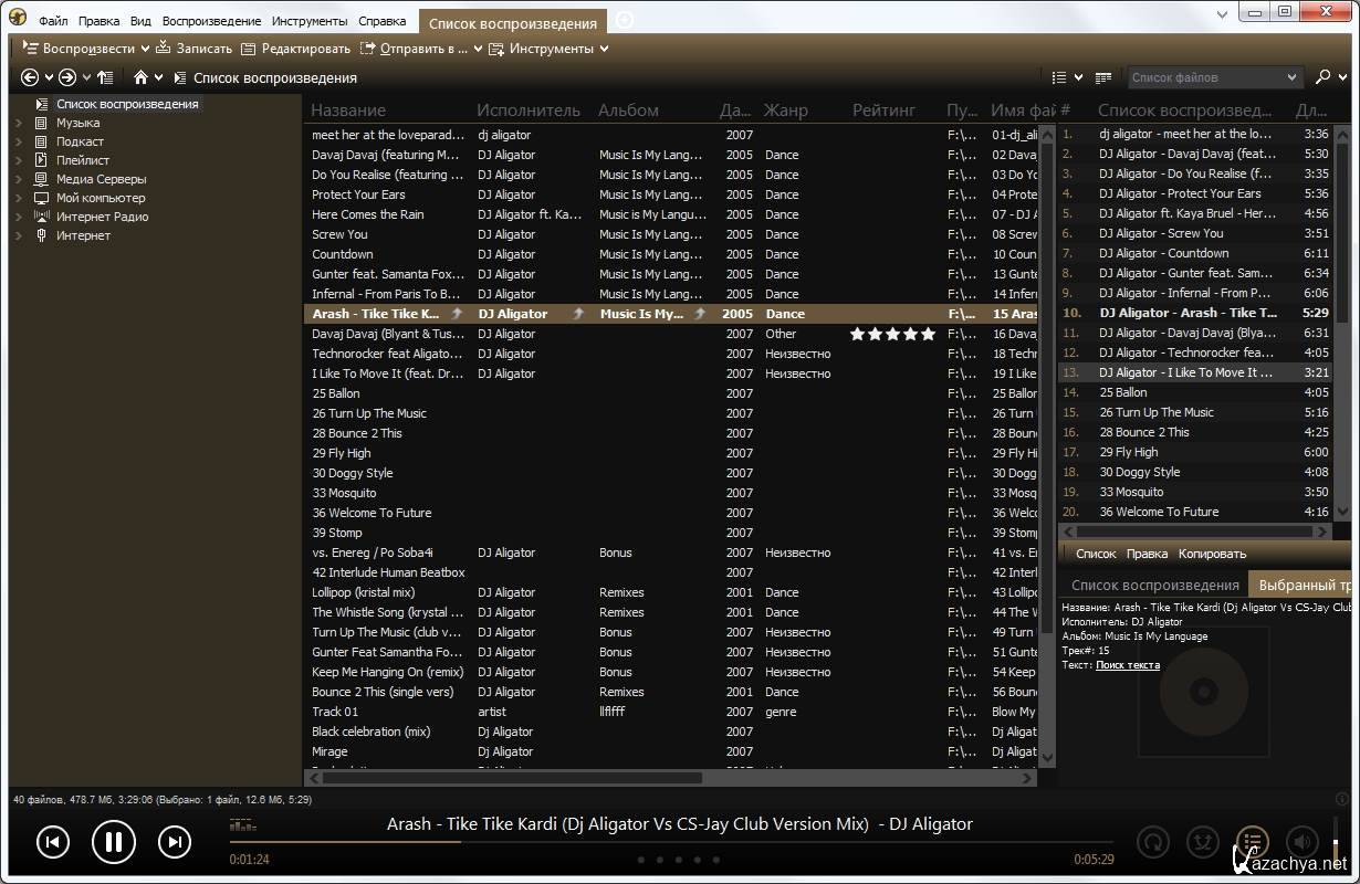MediaMonkey Gold - программа предназначена для ведения базы данных музыкальных файлов, позволяет собрать все музыкальные композиции в единый каталог. MediaMonkey работает с распространенными форматами музыкальных файлов: MP3, OGG, WMA, MPC, FLAC, APE. Обладает широкими возможностями, среди которых можно выделить следующие: поддержка скинов, встроенный CD-ripper, CD-burner и конвертер аудио форматов.